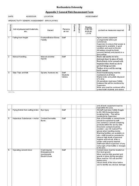 Read example risk assessment bricklayers pdf hse rtf Library Genesis